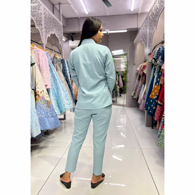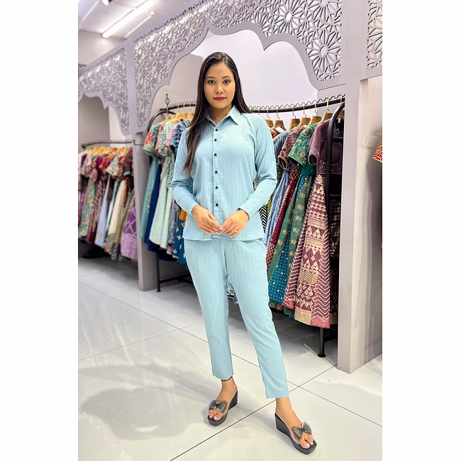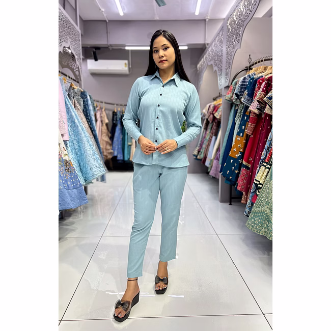 The Designer Ladies Shirt Pant(Full Stitch) from OkCloth offers a refined blend of style and comfort. Its timeless silhouette makes it ideal for various occasions.