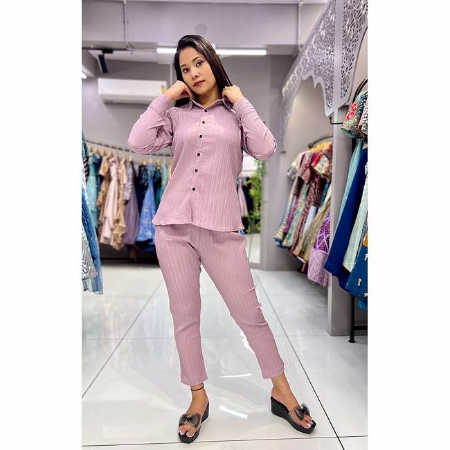 *Shirt Fabric* :- Sugarcane *Colour* :- Pista / Peach *Neck Pattern* :- Shirt Collar *Shirt Length* :- 27” *Sleeve Length* :- 23” *Pattern* :- Opening Button *Size* :- S-36 / M-38 / L-40 / Xl-42 *Pant Fabric* :- Sugarcane *Colour* :- Pista / Peach *Pant Length* :- 38” *Waist Size* :- UP To 36/38/40/42” *Pattern* :- One Side Pocket / Back Side Elastic / Anchor Length *Weight* :- 400 GMNote:-“Color Variation May be Change Due To Light ,Camera And Mobile Screen Effect.”BE aware of some sellers using our shoot pictures and selling cheap quality Designed for international appeal, this top delivers both elegance and export-ready quality.