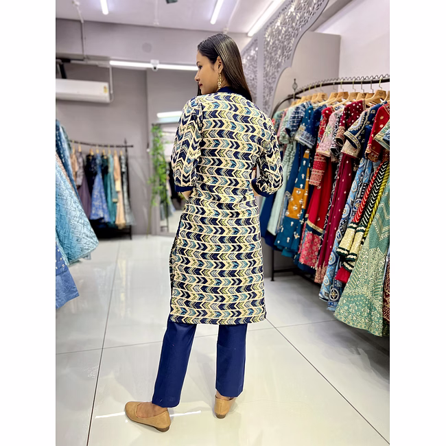 The Designer Zigzag Kurti Pant(Full Stitch) is a perfect blend of style and comfort, designed to elevate your wardrobe effortlessly. Crafted with premium-quality fabrics, this piece offers a flattering fit and a timeless appeal, making it suitable for various occasions. Its versatile design allows you to pair it with jeans, skirts, or tailored trousers, creating a variety of chic looks. Whether you're heading to a casual outing or a semi-formal event, the Designer Zigzag Kurti Pant(Full Stitch) ensures you stand out with elegance and poise. Upgrade your fashion game today with this must-have piece.